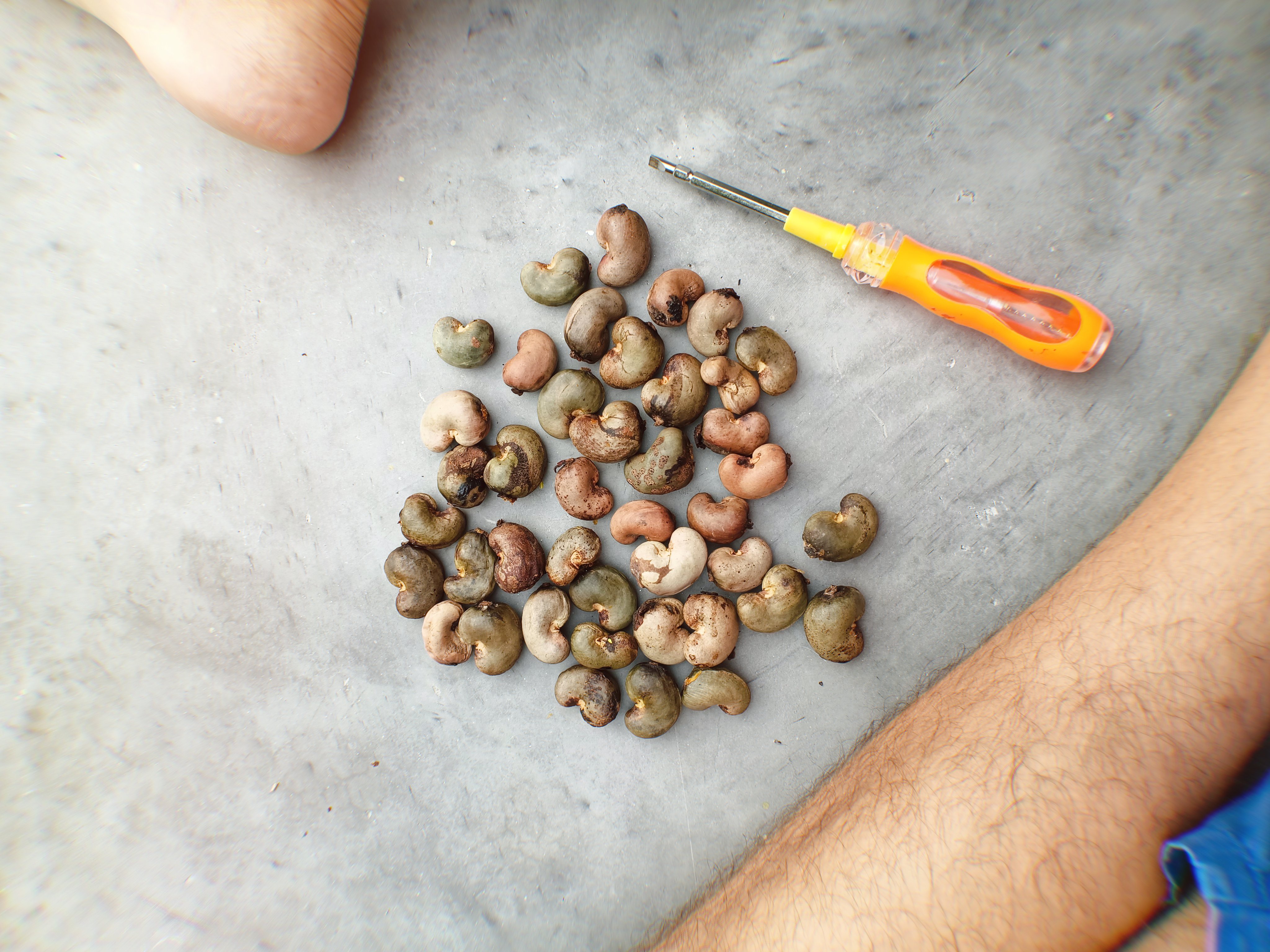 We were thrilled to find raw cashews on the side of the road. They are not easy to open and contain a toxic oil in the skin, so it is not the most trivial thing (although perfectly possible) to open them, dry them in the sun and enjoy them in their unaltered raw state. ποΈ